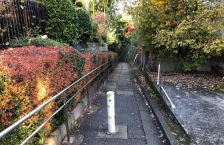 長い階段は、全て登り切らず、途中の中腹に広がる住宅街で右折します。